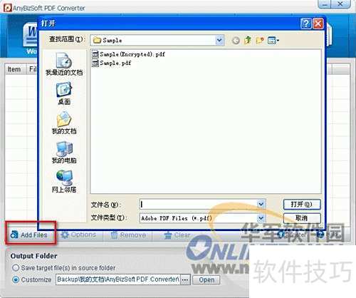 1、 安装完成后,双击桌面上的AnyBizSoft PDF Converter图标启动程序。程序启动后,点击主界面中的ADD FILES按钮,即可添加需要转换的PDF文件。此时系统将弹出文件选择窗口,用户只需浏览并选中目标PDF文件,确认无误后点击确定即可完成添加,操作简便直观,整个过程1所示。