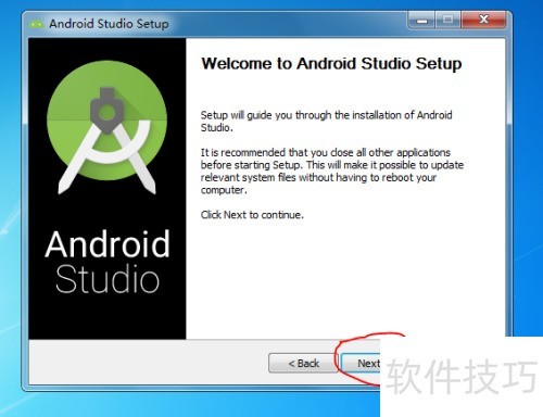 1、 前往官方网站下载Android Studio,按照图示步骤点击安装即可。