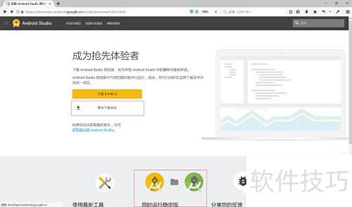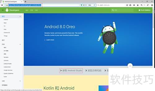 5、 访问谷歌中国开发者网站,点击获取安卓工作室软件。