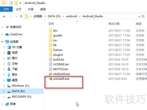 4、 检查Android Studio的安装目录,确认需卸载的版本无误后,执行Uninstall操作即可完成卸载。
