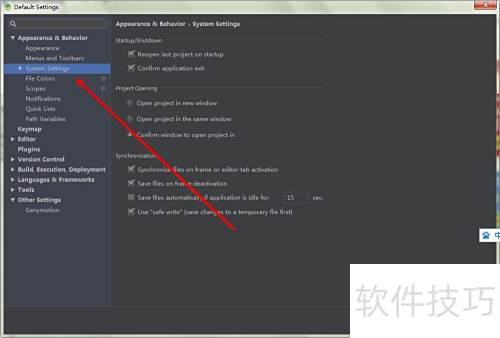 3、 在外观与行为选项中,选取系统设置进行配置。