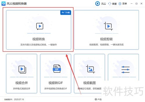 1、 启动软件主页面,选择视频转换功能,进入处理界面。