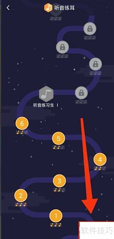 3、 进入界面选择关卡,开始练耳听音训练。