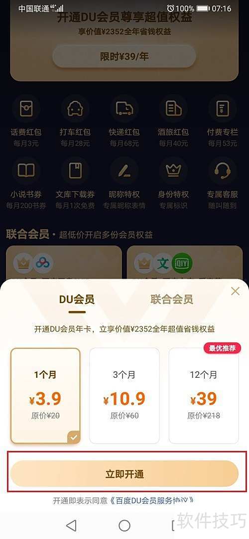 在百度中开通DU会员的方法如下,简单几步即可完成。