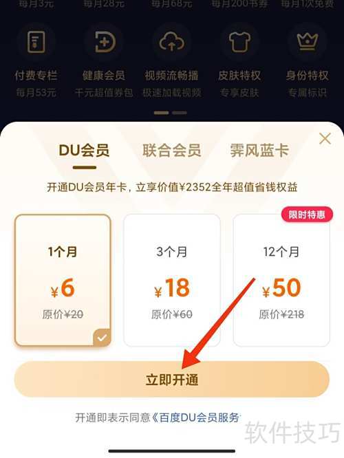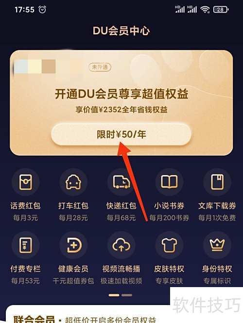 2、 进入DU会员中心,选择限时50元/年优惠活动。