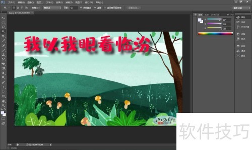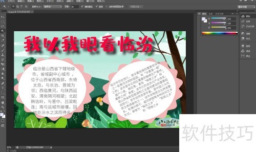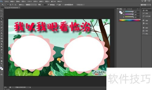 4、 新建图层,设计手抄报标题我以我眼看临汾。