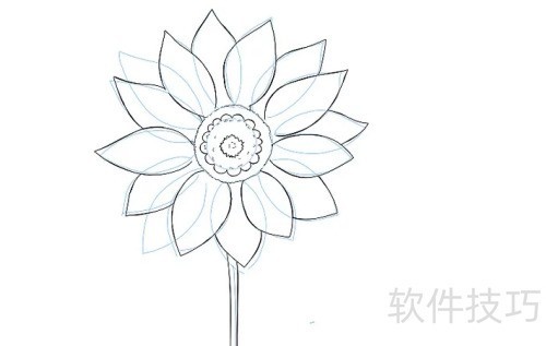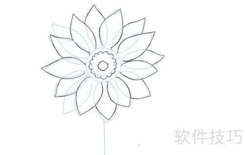3、 围绕大圆绘制花瓣,保持大小与形状基本一致。