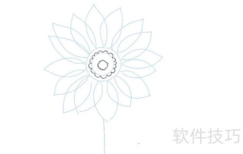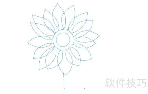 7、 描绘更大圆圈及茎部的外形。