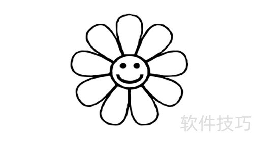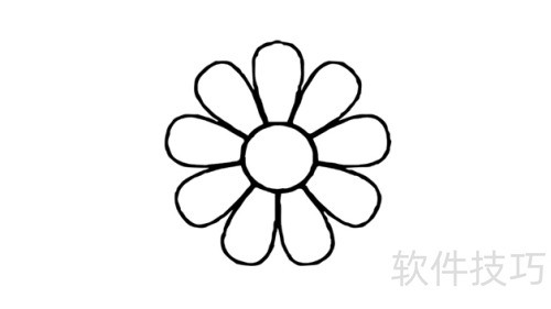 1、 先画圆形花蕊,再用椭圆勾勒花瓣。
