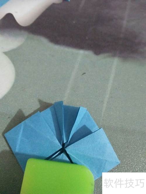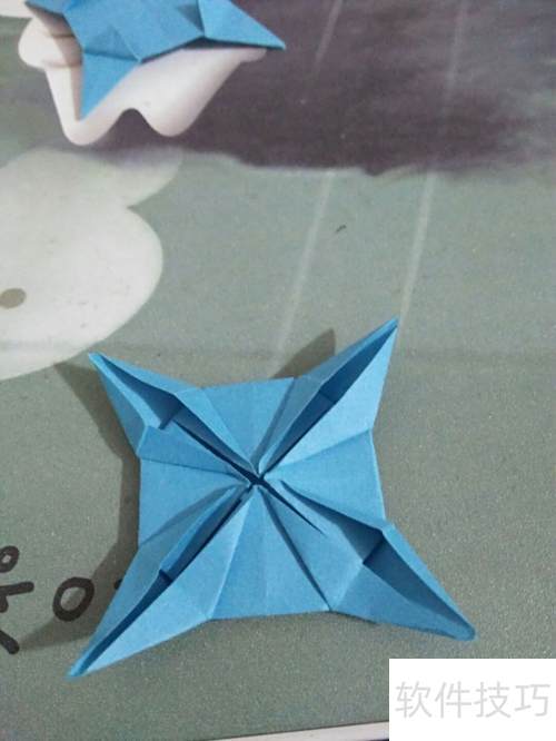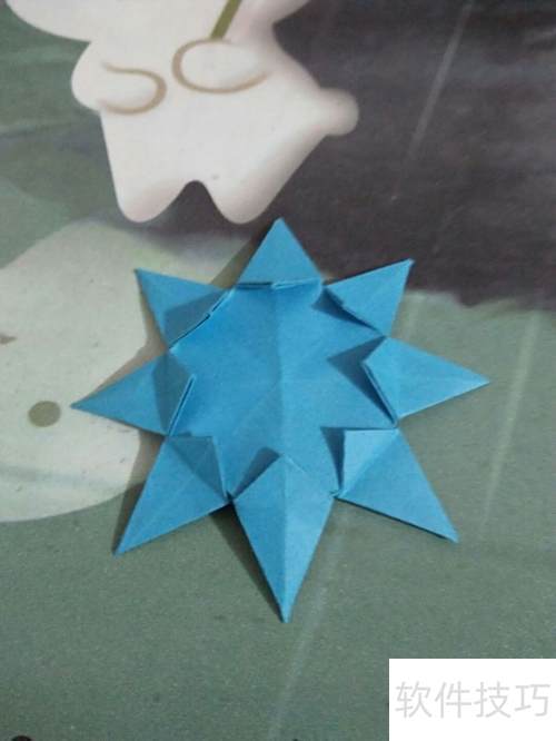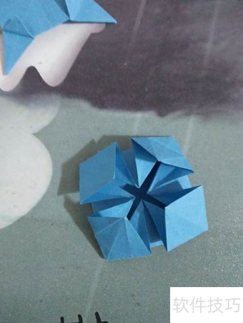 4、 蓝色太阳花折纸教程,简单暖心