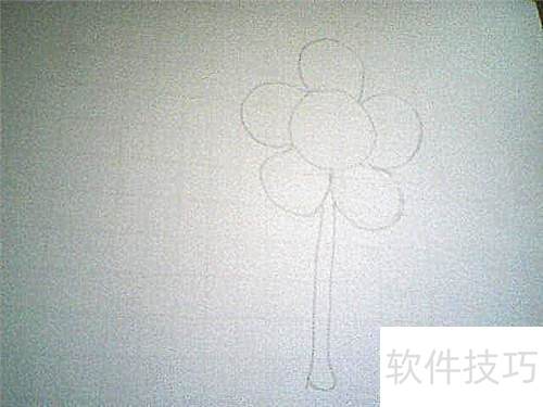 2、 在花盘上绘出一条弯曲的线,勾勒出太阳花的花瓣轮廓。