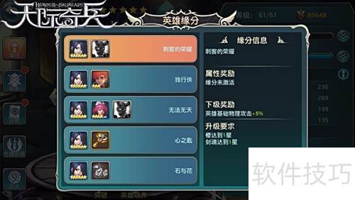 6、 天际奇兵中的英雄缘分不仅鼓励玩家收集指定伙伴或装备,更蕴含成长机制。一旦激活缘分,角色将获得属性加成,且该加成会随英雄等级提升而增强。随着英雄之间默契度提高,属性奖励也会逐步升级。因此,缘分系统深度融入角色养成体系,战力提升离不开英雄的持续培养,强化角色才能最大化缘分收益。