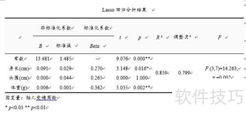 3、 本案例推荐最佳K值为0.01,重新分析时输入0.3,得出最终Lasso回归模型结果所示。