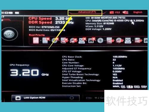 2、 超频前需先关闭电脑,随后重启并在开机过程中持续按键进入主板BIOS界面。不同型号主板的进入方式略有差异,可在网上查询对应型号确认具体按键。进入后,按下F7键或点击顶部的Advanced(高级)选项,即可进入高级设置界面,为后续的超频操作做好准备。务必确保操作准确,避免误设导致系统不稳定。
