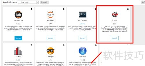 1、 启动Anaconda后,选择并进入Spyder编程界面开始操作。