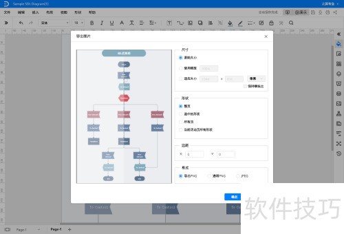 5、 绘制完成后,可通过右上角的保存、下载、打印或分享按钮对SDL图进行存储,还支持导出为图片、PDF、PPT等多种格式,方便后续使用与传播。