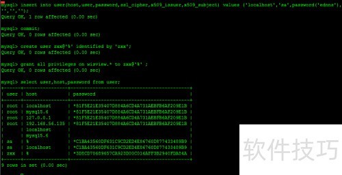 10、 通过向mysql.user表插入数据,可实现新用户的添加。