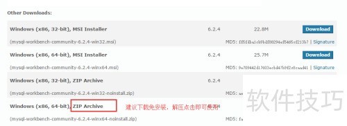 3、 前往MySQL社区下载页面获取免安装版,便捷安装,快速使用。