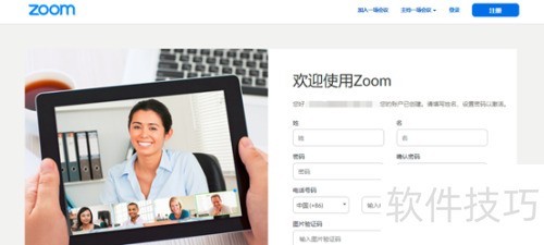 6、 打开Zoom个人资料页面,填写姓名、密码等信息完成注册。