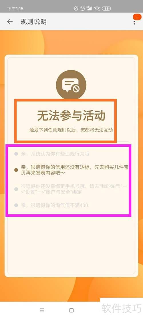 6、 提示无法参加买家秀,需先完成相关规则要求,达标后即可参与活动。