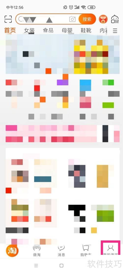 2、 打开手机淘宝,点击首页右下角的我的淘宝进入个人页面。