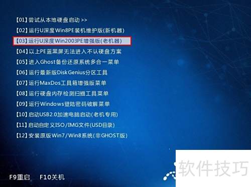 1、 将制作好的U深度U盘插入电脑,重启并等待开机画面出现时,按下启动快捷键进入启动菜单,选择U深度Win2003PE增强版(适用于老机型),按回车执行,具体操作所示。