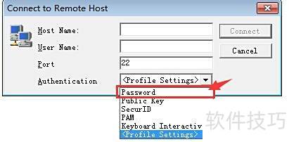 4、 选择合适的Authentication验证方式,需先明确连接的建立方法。本文所述场景为通过地址、账号及密码建立传输协议连接。在此情况下,应于Authentication中选择password作为验证方式,以确保连接的安全性与正确性,保障数据传输的稳定可靠,避免因验证方式不匹配导致的连接失败或权限问题。