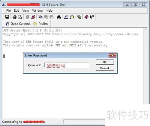 5、 选择合适的认证方式后,点击图1中的connect按钮。若出现图2所示的提示,表明断开连接的错误已解决。此时,在密码输入框中填入正确的登录密码,即可顺利完成登录操作。整个过程简单直观,确保网络连接稳定即可。
