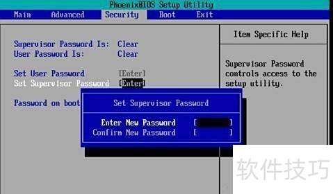 16、 进入Security选项,选择设置主管密码,按下回车键进行密码设定操作。