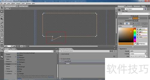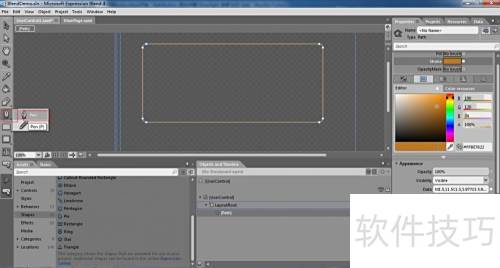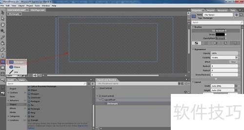 2、 将矩形控件从工具箱拖拽至工作区域,所示。