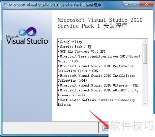 1、 下载VS 2010 SP1补丁并安装,点击下一步继续操作,所示。