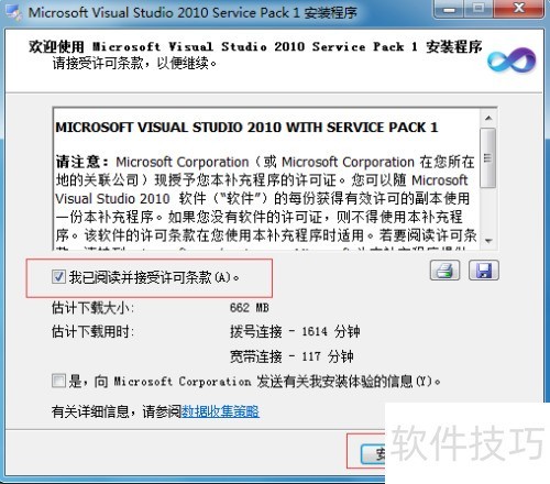 2、 请勾选同意许可协议选项,然后点击安装按钮,操作所示。