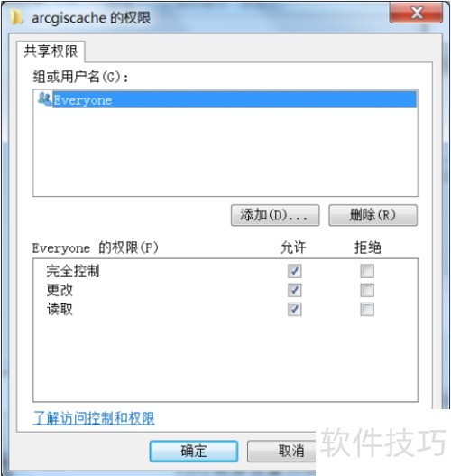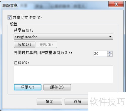 2、 首先创建 arcgiscache 目录的共享文件夹,例如将其共享路径设为指定位置。