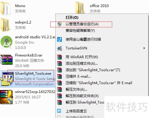 2、 右键安装包,选择以管理员身份运行进行安装。