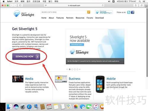 1、 打开Safari浏览器,搜索Silverlight,进入微软官网进行下载安装。