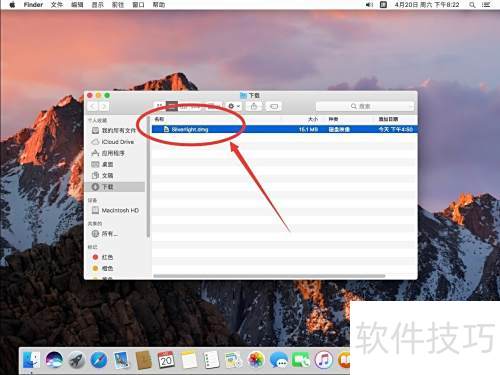 4、 下载完成后,在列表中点击Silverlight.dmg右侧的放大镜,即可在Finder中查看对应的安装文件。