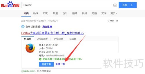 1、 首先,在百度搜索Firefox,选择普通下载,安装火狐浏览器即可。