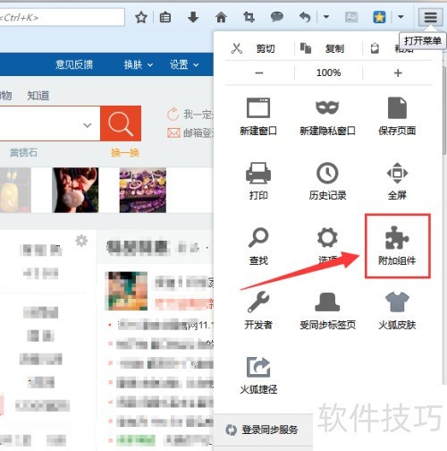 3、 第三步,进入Firefox浏览器菜单,选择附加组件以查找所需插件。