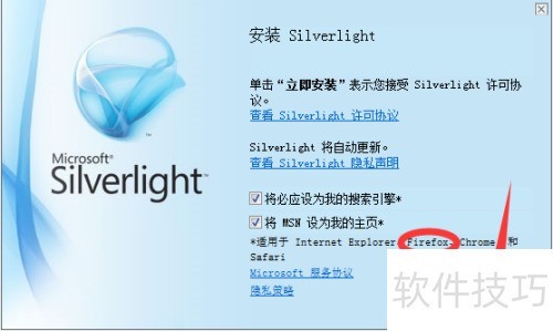 8、 点击立即安装按钮,随后重启浏览器,即可正常使用Silverlight插件。