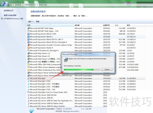 2、 进入控制面板,点击程序和功能,在列表中找到Microsoft Silverlight,选中后点击卸载即可,操作步骤所示。