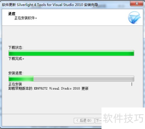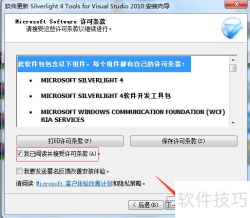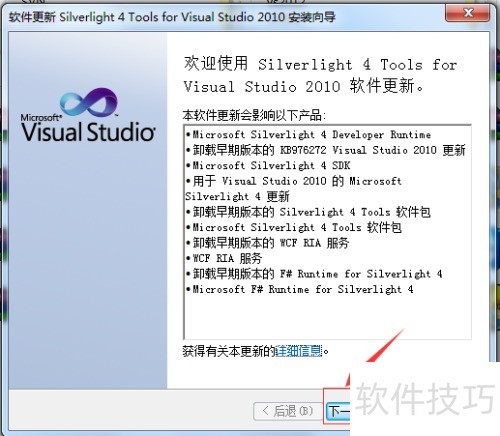 3、 下载并安装Silverlight4工具,运行后点击下一步,操作界面所示。
