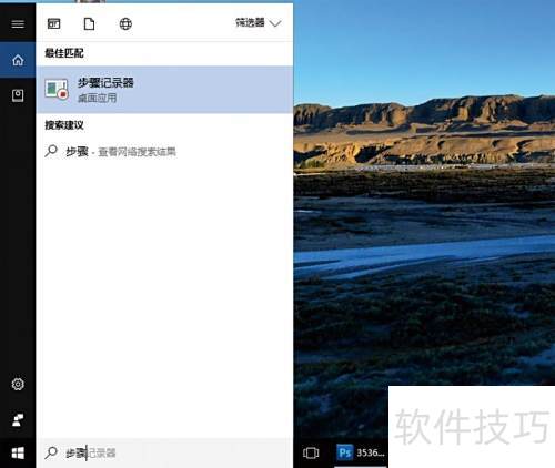1、 在Windows 10搜索框中输入步骤记录器,即可找到并打开该工具,适用于Win7及以上系统。