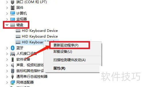 3、 最后选择键盘选项,点击更新驱动程序,鼠标和键盘便可恢复正常操作。