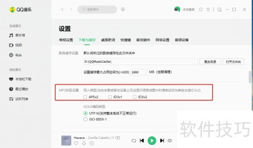 4、 在下载与缓存菜单中可配置MP3标签选项。
