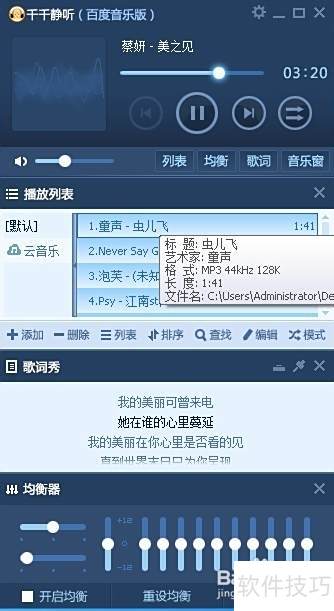 1、 千千静听不仅音质出色,还具备强大功能,支持批量修改MP3文件信息与封面缩略图,内置音频格式转换工具,操作便捷,是集播放与文件管理于一体的实用音乐软件。