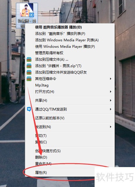 1、 右键点击MP3文件,选择属性即可编辑信息。