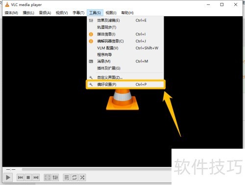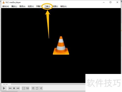 1、 在VLC媒体播放器主界面,选择顶部菜单栏中的工具选项。