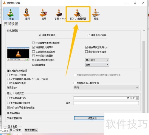 3、 在偏好设置窗口中,选择顶部的输入与编解码器选项图标。