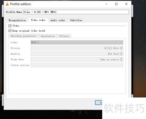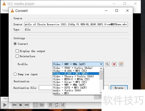 6、 选择视频 - H.264 + MP3(MP4)作为配置文件。