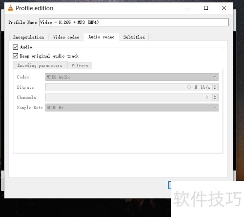 10、 在音频编解码器选项中,选择音频并保留原始音频轨道。